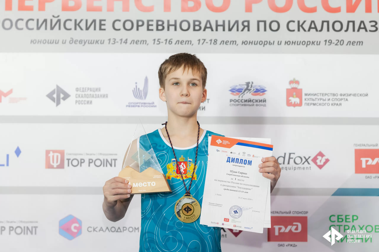 В Перми на Первенстве России по скалолазанию в дисциплине «боулдеринг» среди юношей 13–14 лет уверенную победу одержал Гавриил Шулев, показав результат: 3 TOP, зона на ещё одном боулдере и 84,6 балла, тем самым став победителем Первенства России второй год подряд.